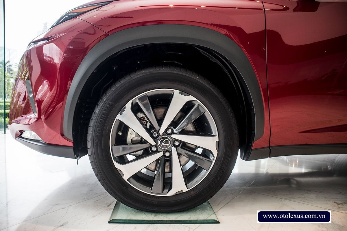 Nhìn từ bên hông, thân xe gây ấn tượng khi sở hữu những đường gân dập nổi nhằm tạo điểm nhấn cho Lexus NX 300 2024. Xe cũng được trang bị thêm bộ gương chiếu hậu có chức năng sấy gương, tự động gập – chỉnh điện và tự động cụp khi lùi. Quan trọng nhất vẫn là bộ vành 5 chấu dạng cánh quạt có kích thước 18 inch cho hai tone màu đen – trắng cực kỳ đẹp mắt.