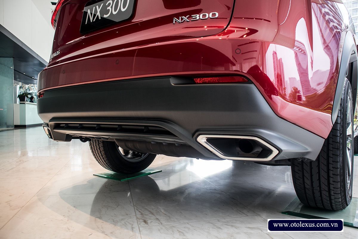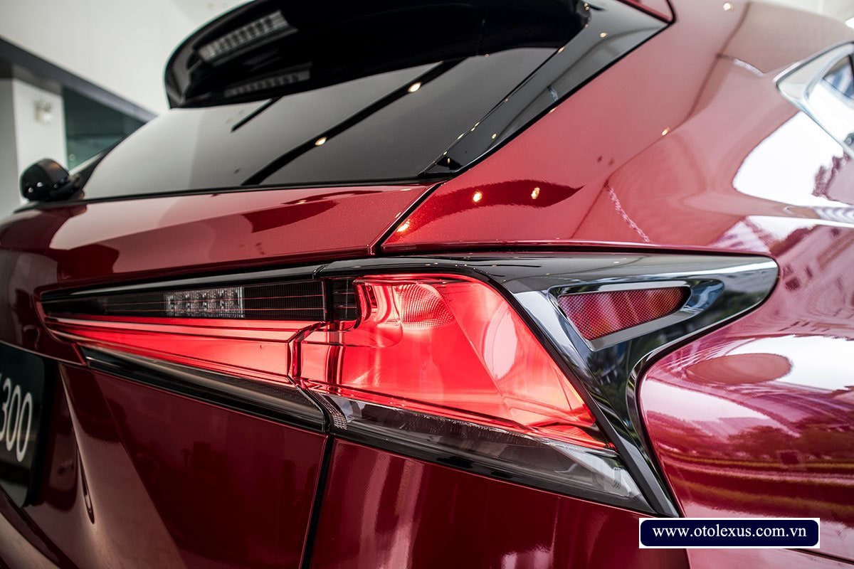 Thiết kế đuôi xe của Lexus NX 300 2024 cũng thu hút người nhìn không kém khi sở hữu cụm đèn hậu dạng LED 3D. Phần đèn màu đỏ của nó được mô phỏng theo tạo hình chữ L sáng rực. Phía dưới là cụm ống xả nằm đối xứng với nhau nhằm tạo nên cảm giác cân bằng. Ngoài ra, ống xả cũng được mạ chrome để khiến chúng trông bóng bẩy và đẹp mắt hơn.