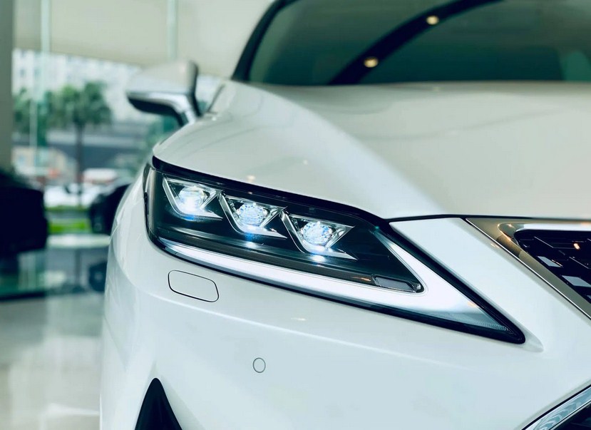 Nhìn một cách trực diện, chúng ta có thể thấy cụm lưới tản nhiệt của xe Lexus RX 300 2024 được thiết kế theo hình chữ X cách điệu, bên ngoài viền được mạ chrome bóng bẩy. Hai bên là cụm đèn LED 3 bóng nằm ngang giúp phân bổ ánh sáng một cách hoàn hảo. Tích hợp với đó là đèn LED báo rẽ dạng tia cho khả năng chiếu sáng liên tục.